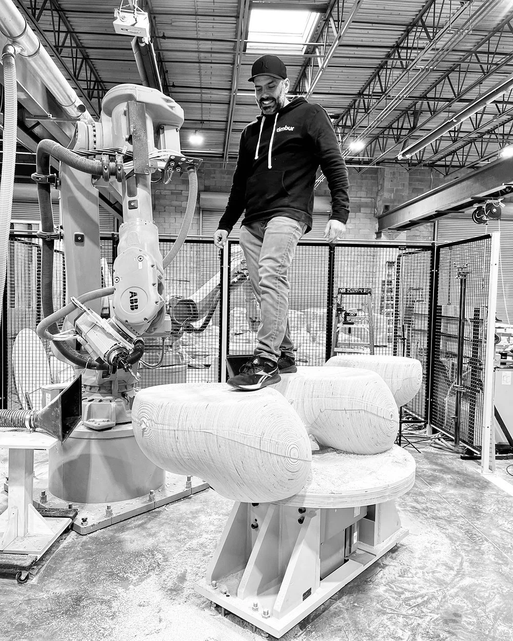 Ezra Ardolino, educated as an architect, is an artist and entrepreneur specializing in digital fabrication at the intersection of art, architecture, and design. With a deep understanding of materiality and robotic manufacturing techniques, he has pioneered the use of Futurewood, an innovative approach to working with plywood as a sculptural medium, in the production of collectible design objects.